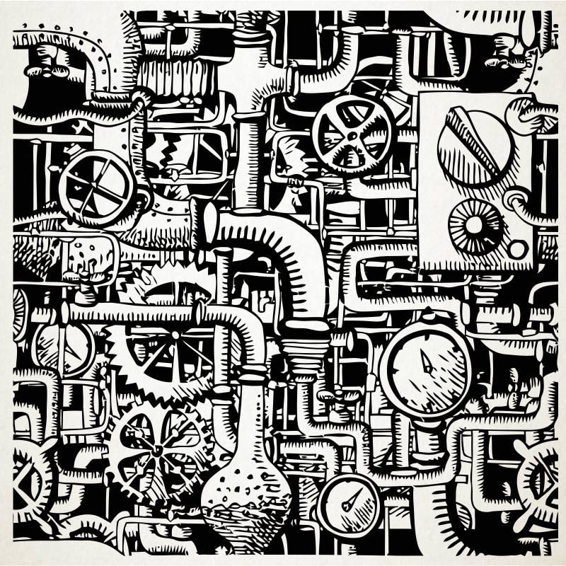 El diseño de esta maquina es un recuerdo de la pelicula de Charles Chaplin tiempos modernos, con una estetica utilizada en los comics o historietas.